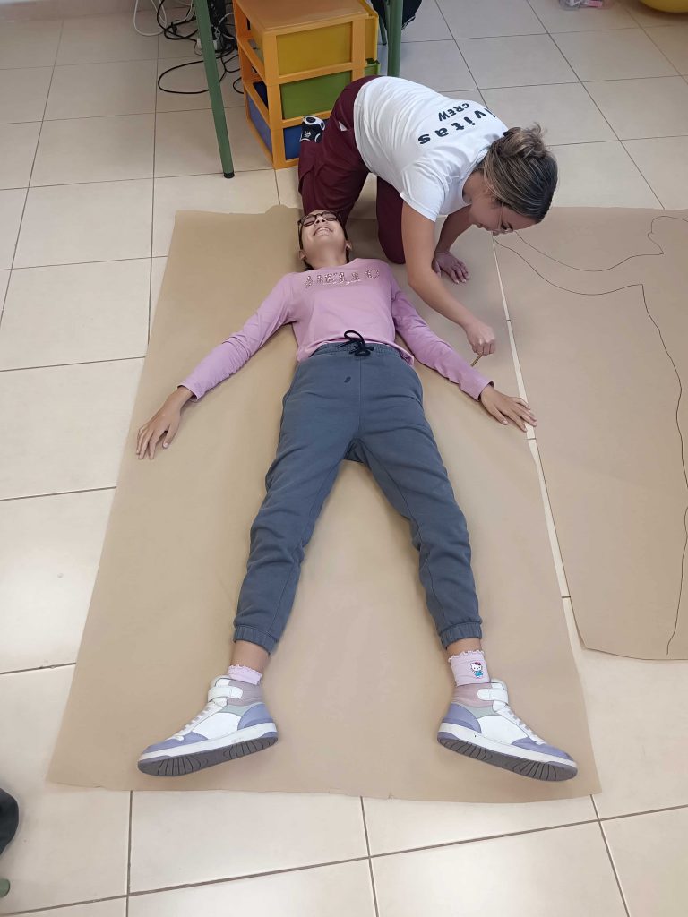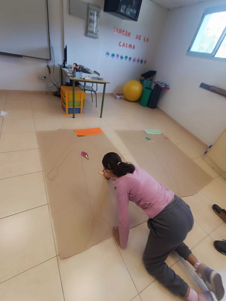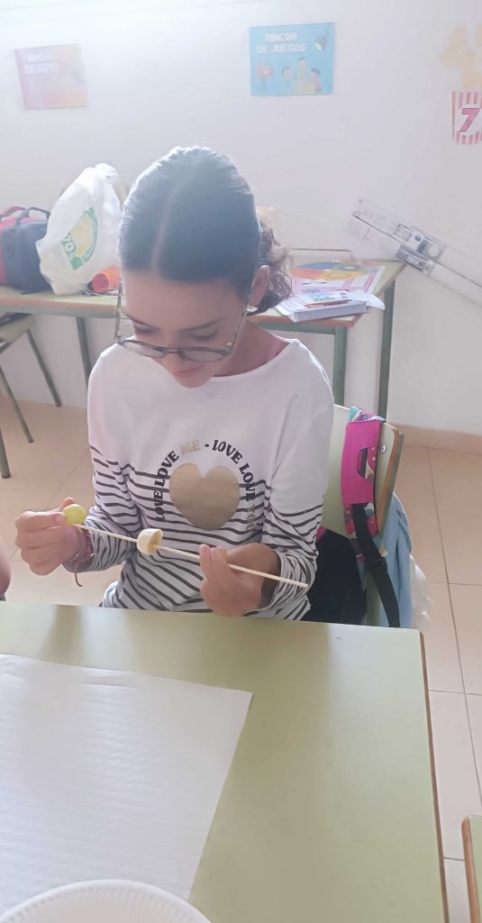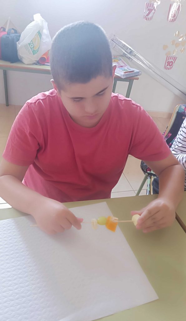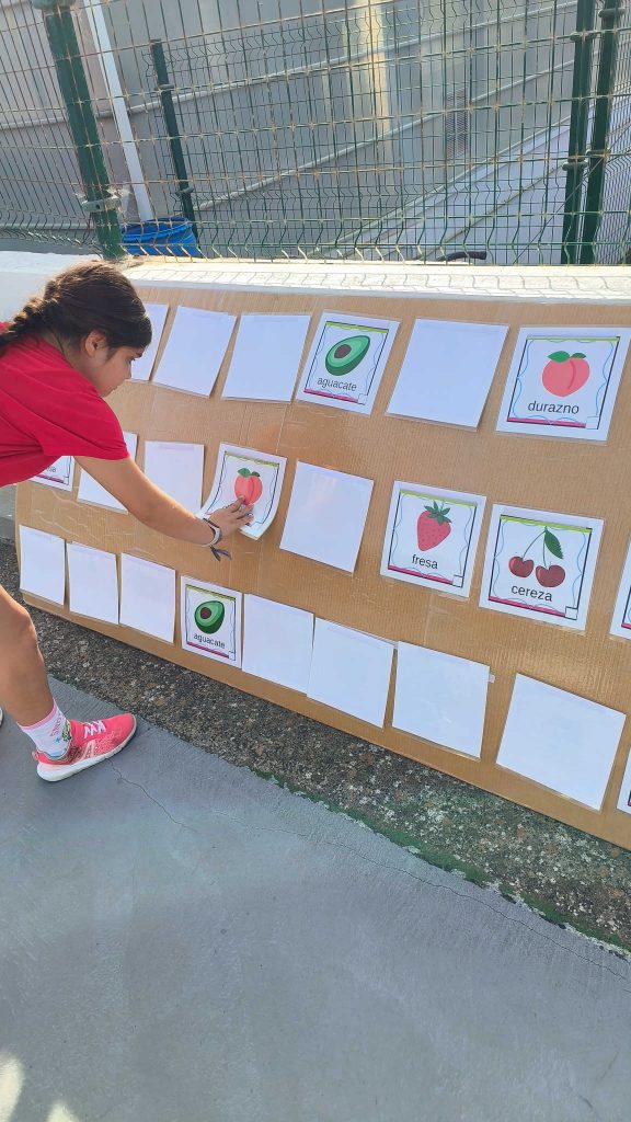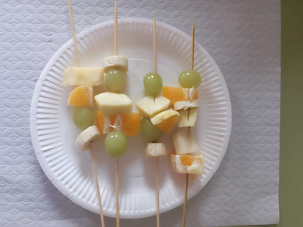 Realizaron dos grandes carteles con la silueta de sus propios cuerpos, para clasificar la comida entre la saludable y no saludable. Además, prepararon unas brochetas de fruta para disfrutar de una merienda sana.