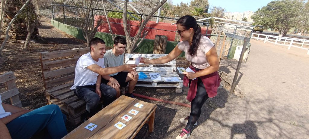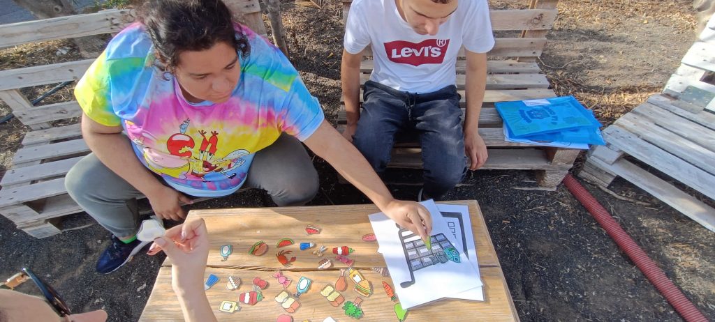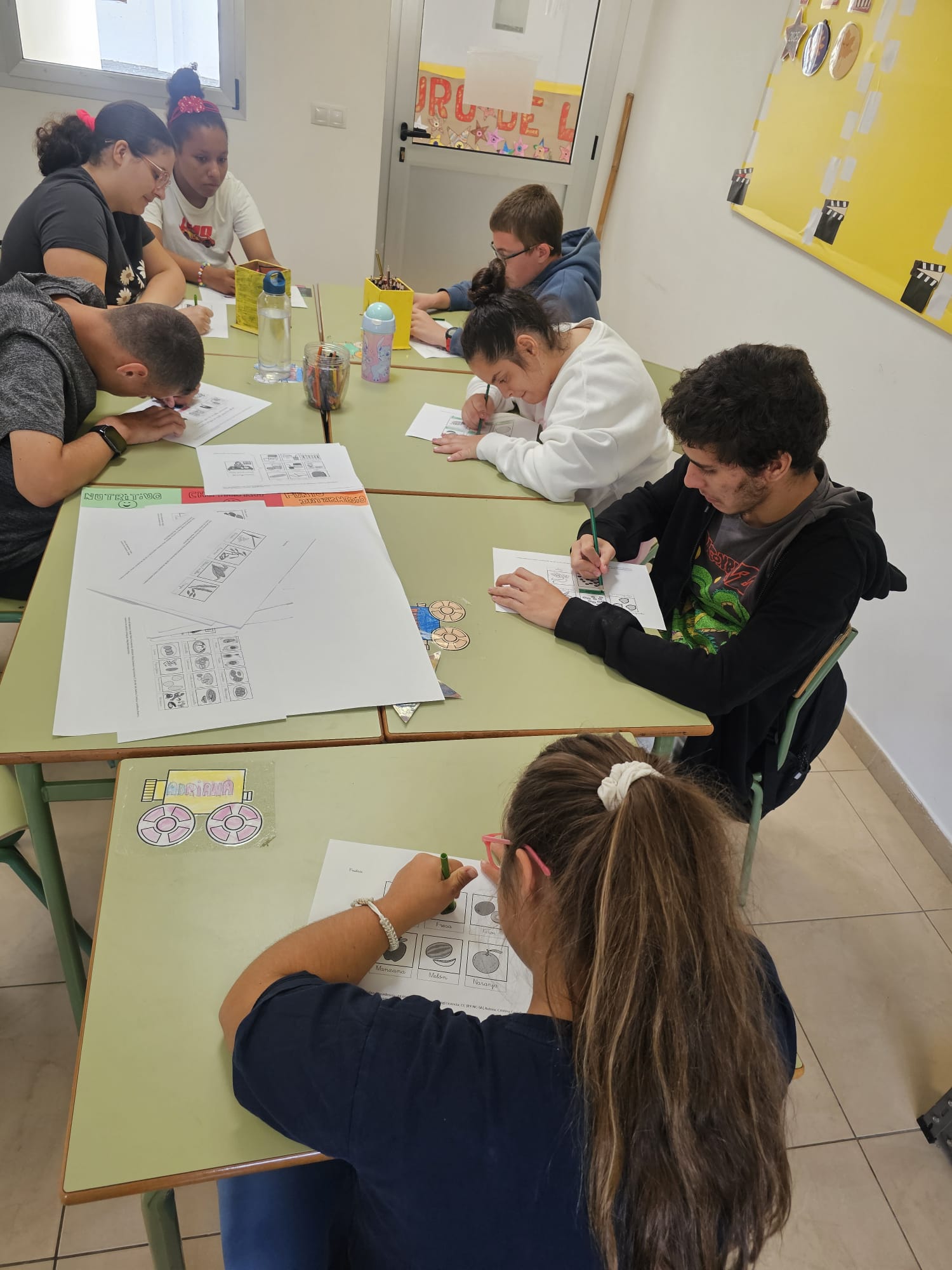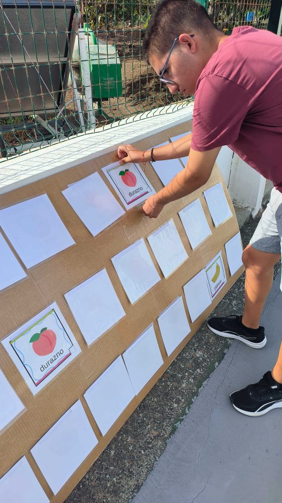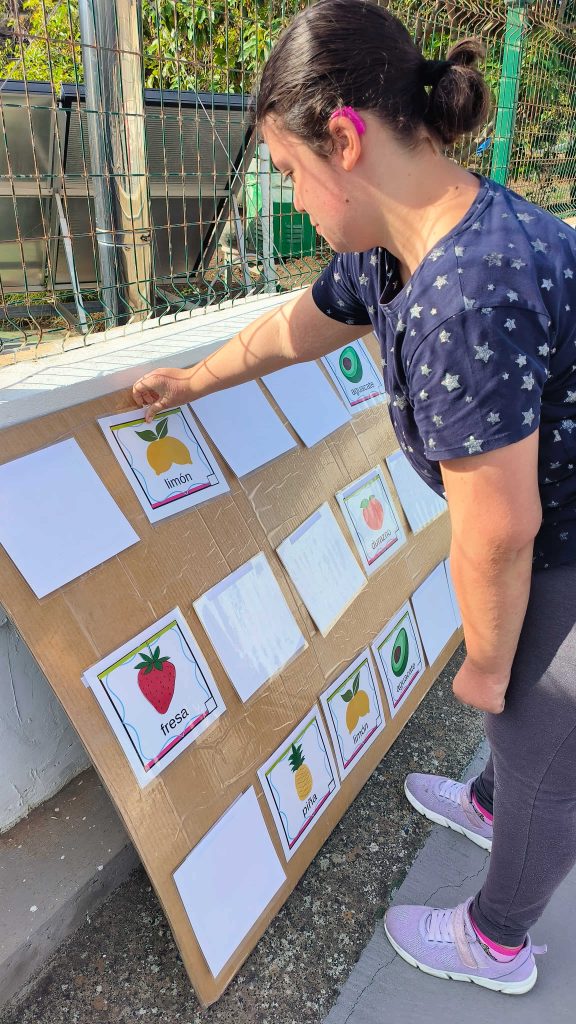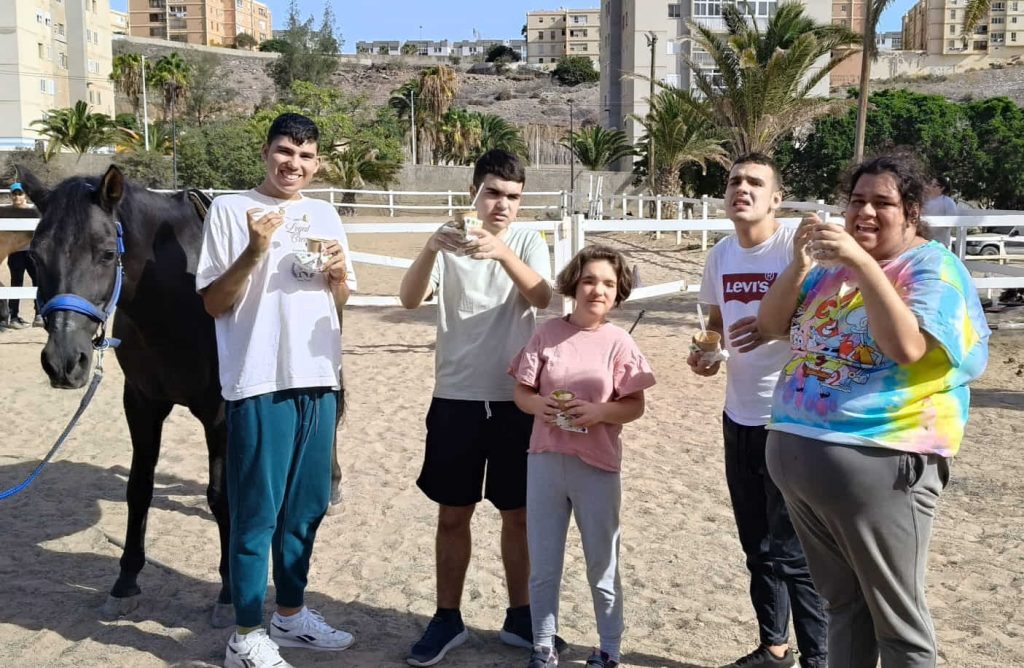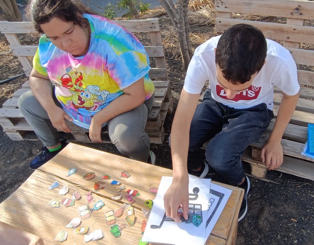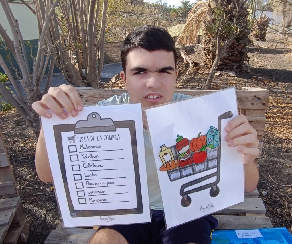 Los chicos y chicas aprovecharon la actividad de equinoterapia para realizar una actividad al aire libre, con pictogramas en la que tenían que identificar los ingredientes de la lista de la compra o asociar cada imagen con la correspondiente.