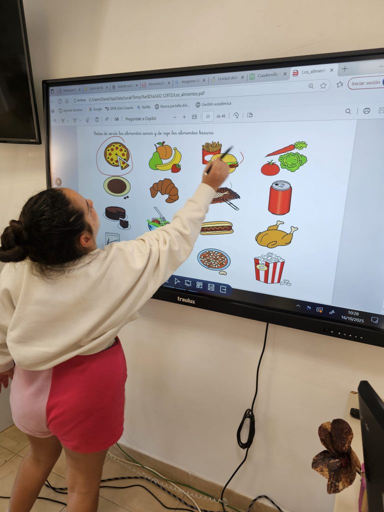 Además, participaron en una dinámica muy participativa en la que clasificaron distintos alimentos según si eran saludables o no, fomentando así la reflexión y el aprendizaje sobre buenos hábitos alimenticios.