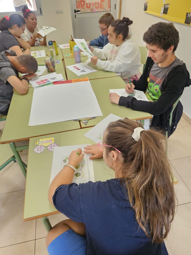 El alumnado de las dos unidades TEA realizó un mural titulado «Mi plato saludable».