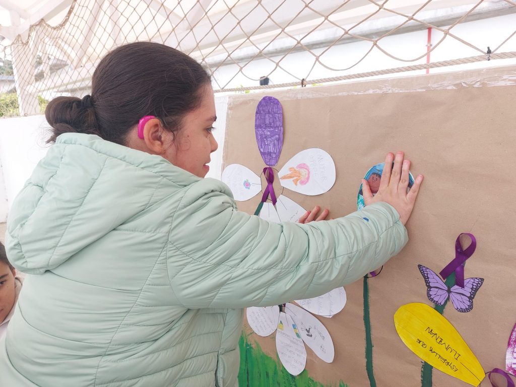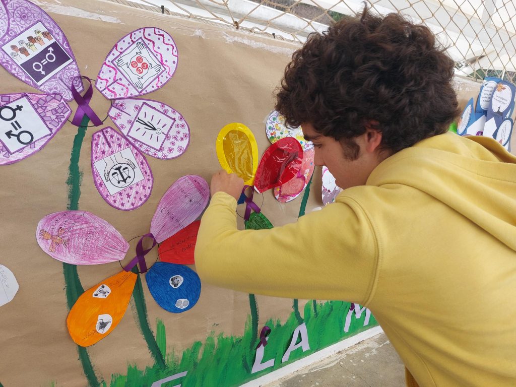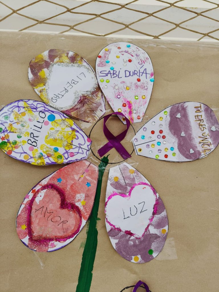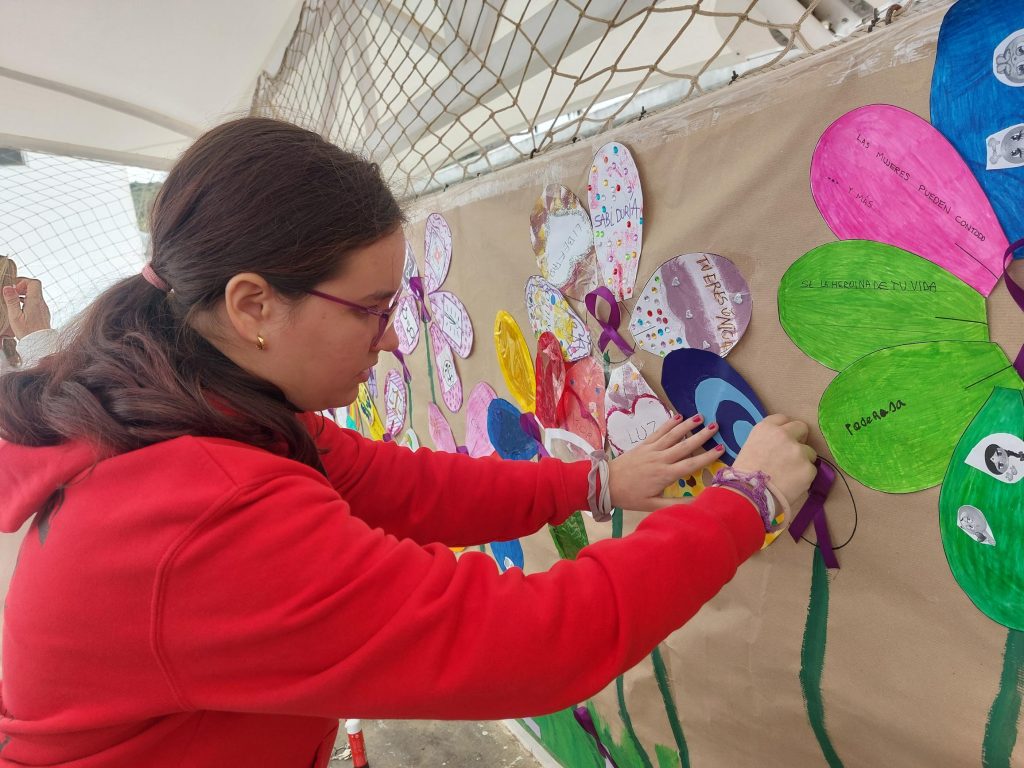 Para ello, nuestro alumnado ha creado «El jardín de la igualdad», donde cada unidad ha creado un jardín con flores cuyos pétalos, llevan mensajes relacionados con la igualdad. Estos mensajes se han trabajado en cada clase durante la semana.