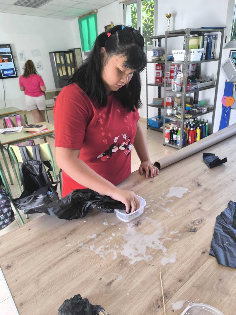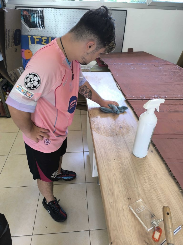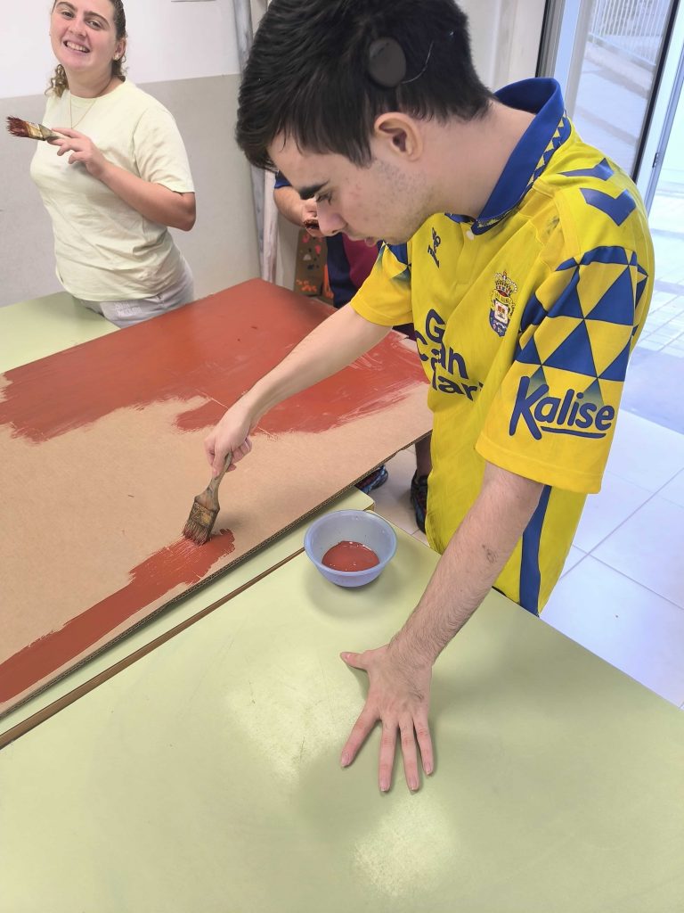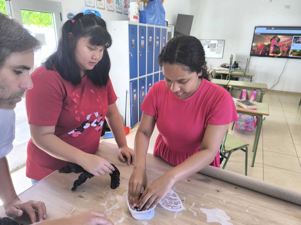 Los compañeros y compañeras están aprendiendo a lavar, secar y tender la ropa en el minipiso.