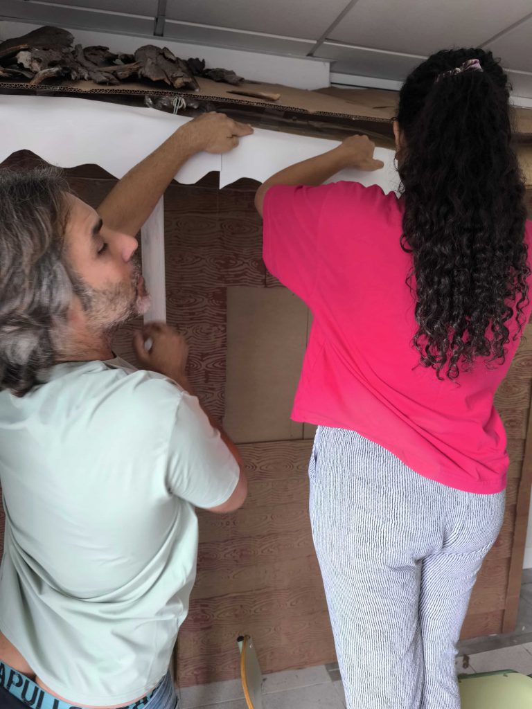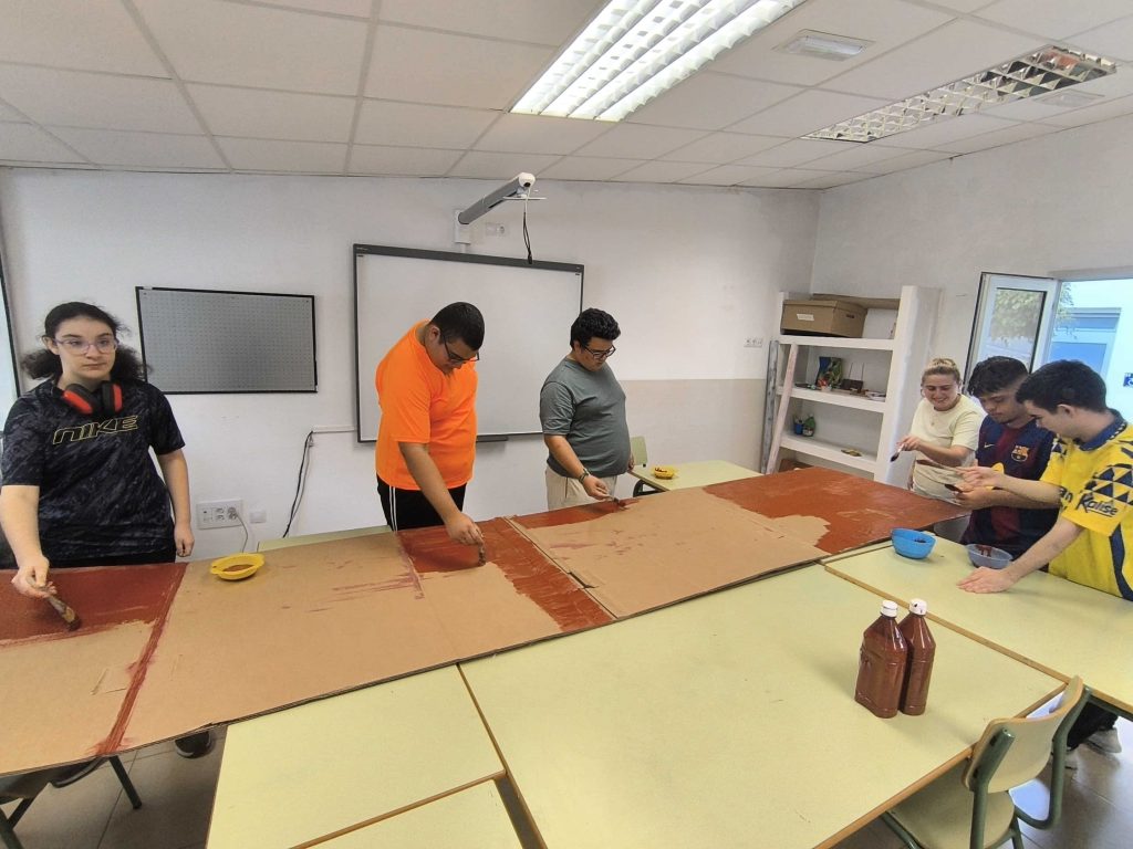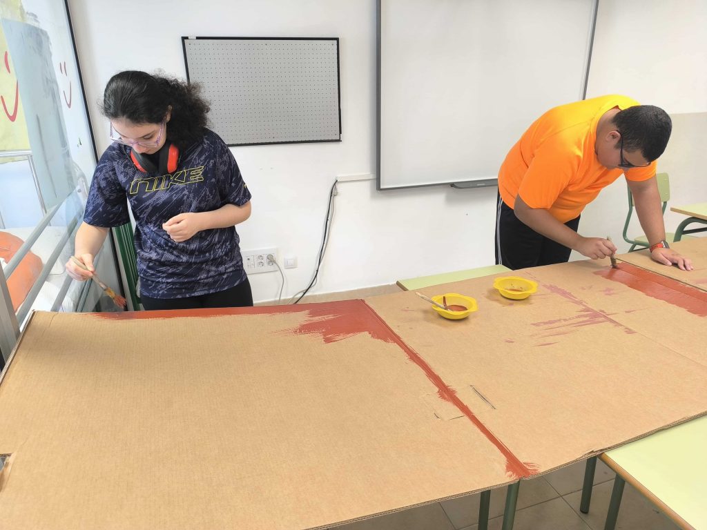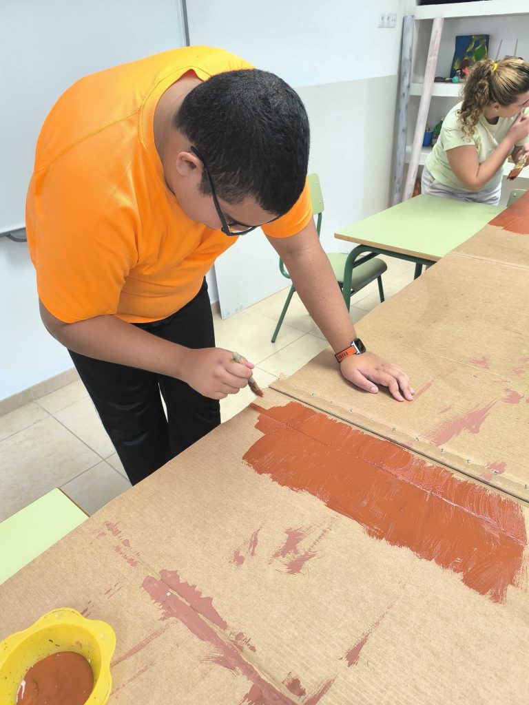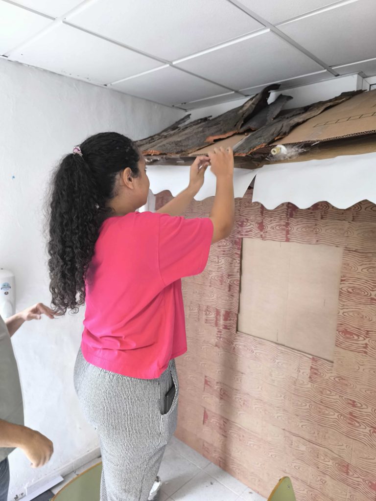 Los chicos participaron en la fabricación de la casa de la navidad para la convivencia.