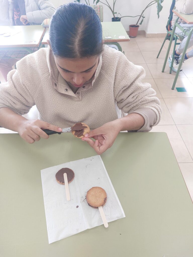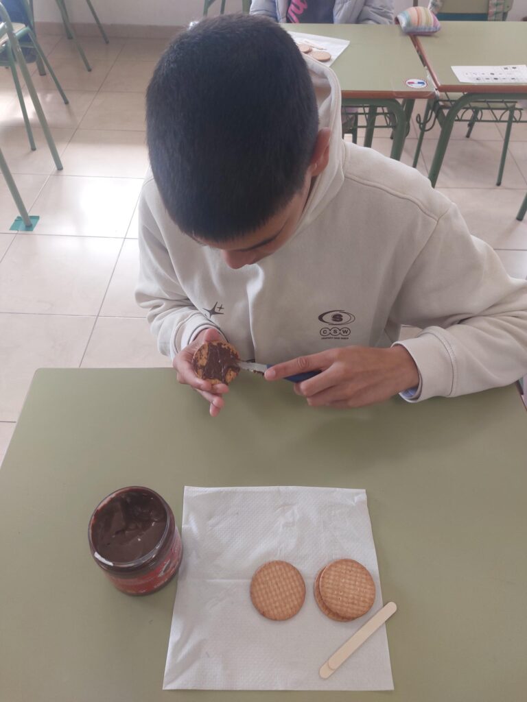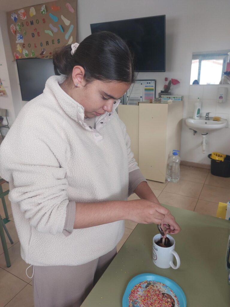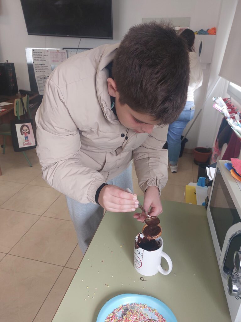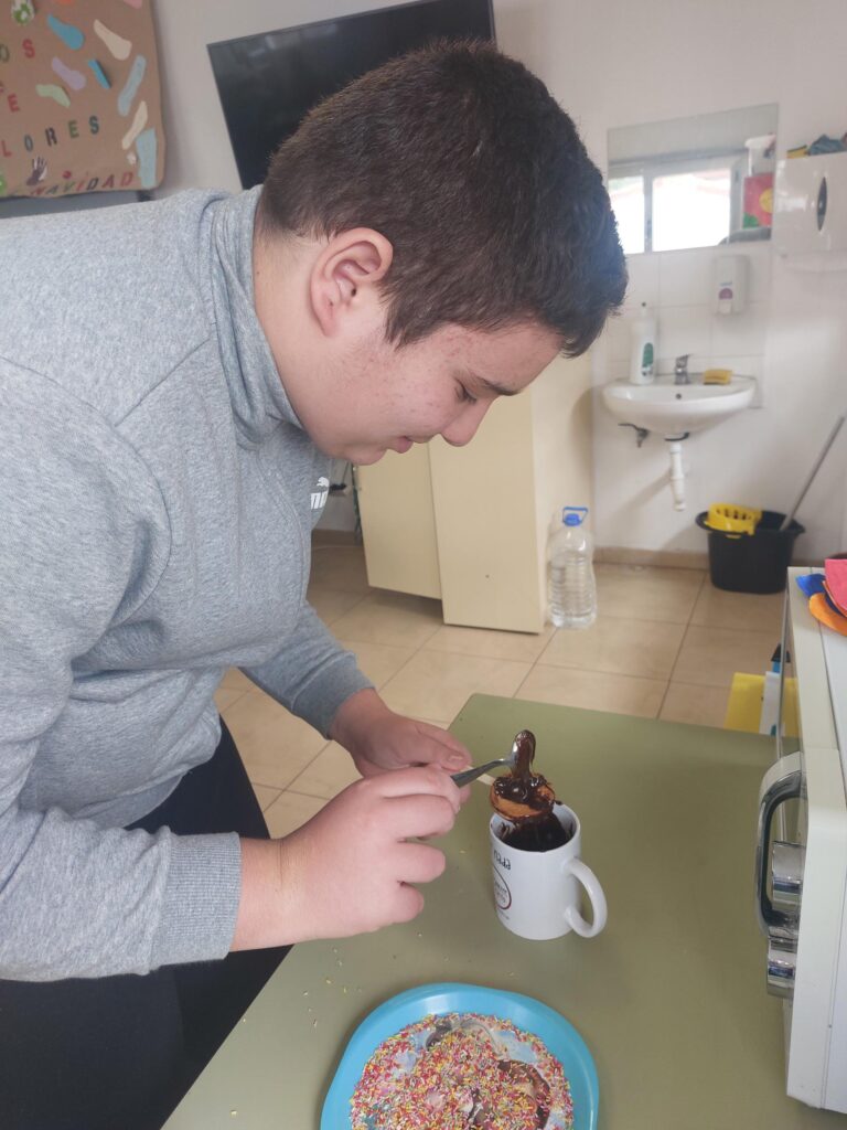 En el Taller de cocina realizamos recetas sencillas que realizamos con la ayuda de nuestra logopeda, que adapta las recetas para que todos podamos entenderlas.