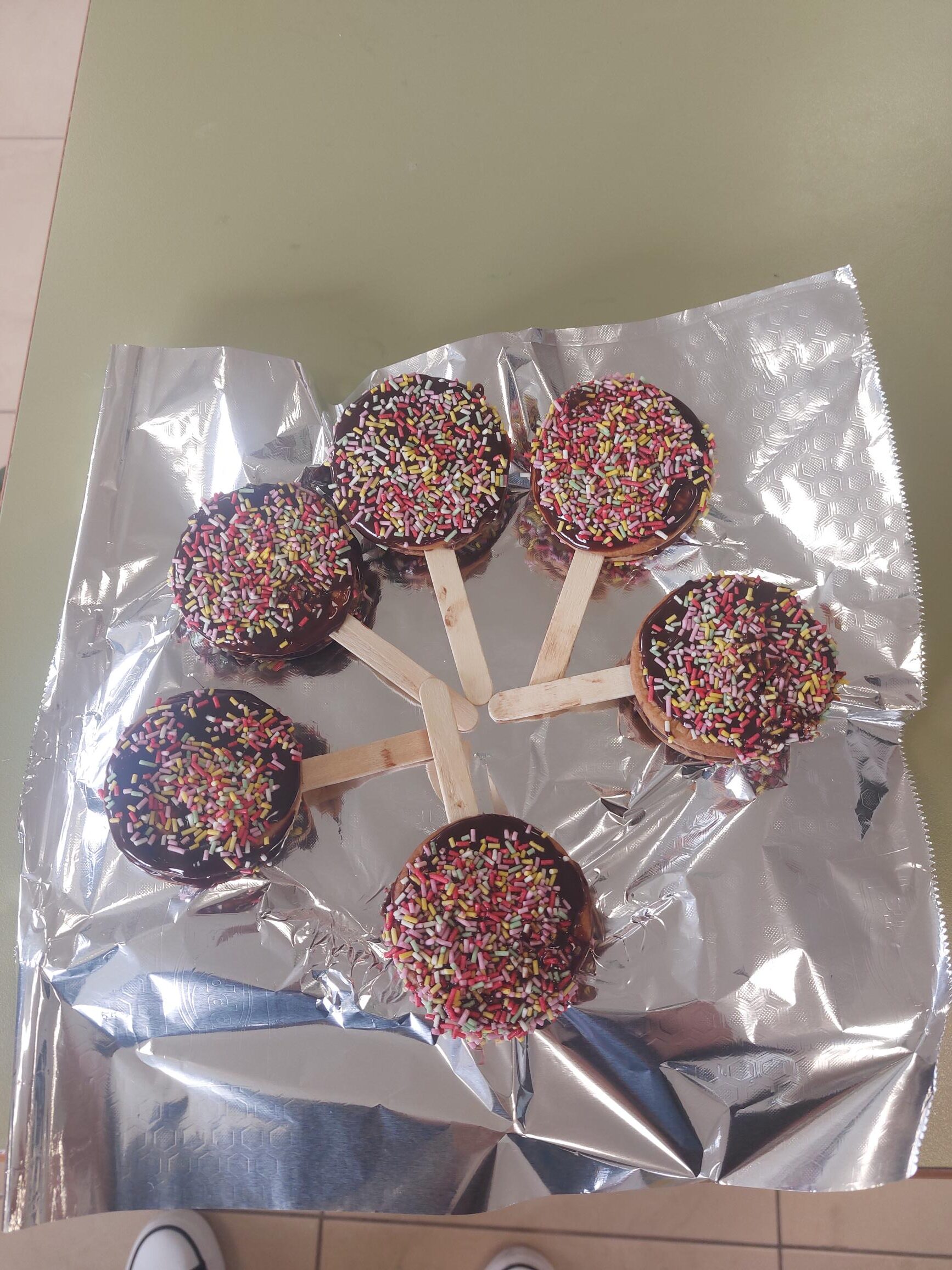 Utilizamos ingredientes como galletas, chispitas de colores, chocolate negro derretido, etc. ¡Estaban riquísimas!