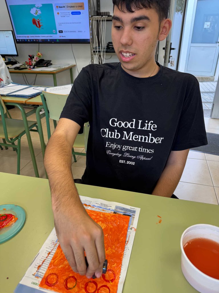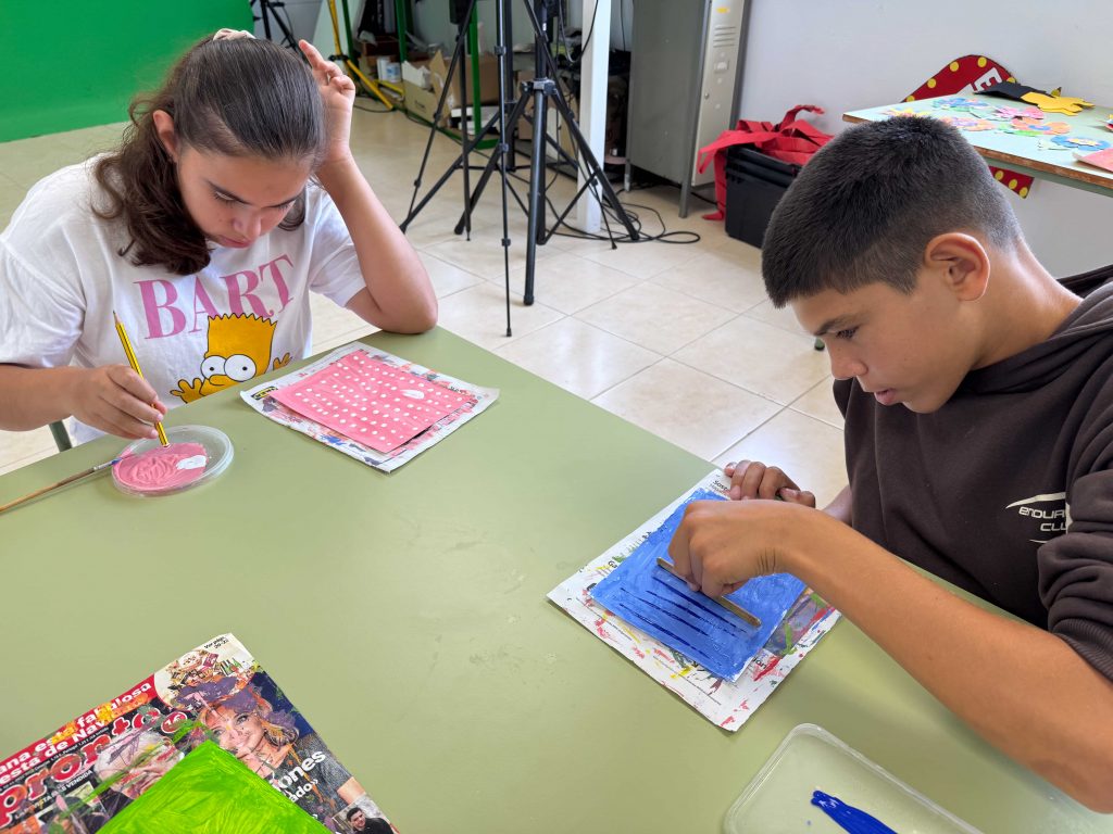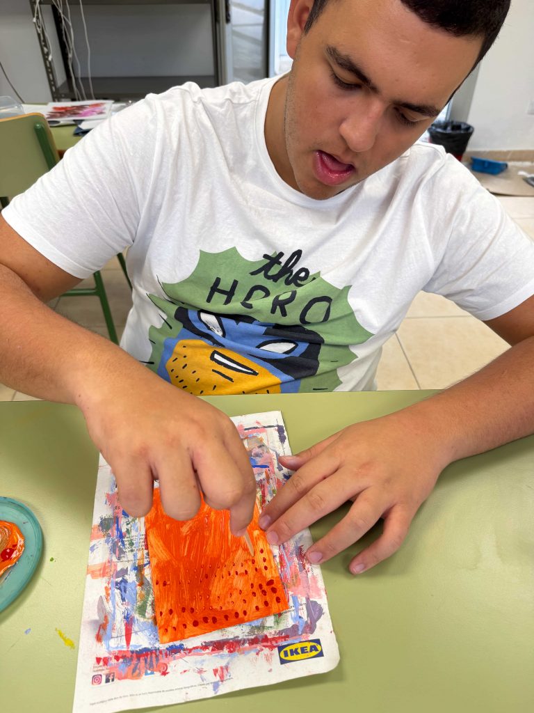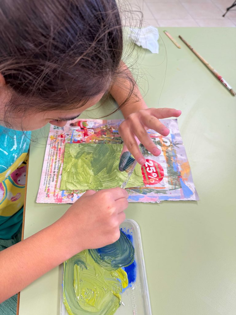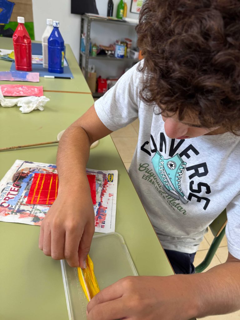 En el Taller de Ilustración estuvimos trabajando las texturas visuales. La técnica utilizada fue la témpera sobre cartulina, estampando, rayando, pintando con distintas herramientas como palos de madera, tapas de rotulador, pinceles secos, etc, para conseguir texturas.