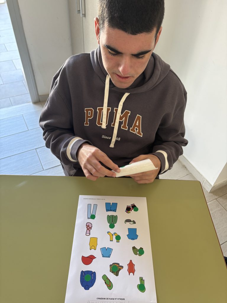 La Unidad A realiza distintas actividades durante la situación de aprendizaje “El Invierno”, a través de las cuales el alumnado conoce las características propias de esta estación. Mediante experiencias manipulativas y significativas, aprenden la temperatura que suele hacer en invierno, la ropa adecuada para protegerse del frío, así como algunos alimentos y animales característicos de esta época del año, trabajando a la vez la psicomotricidad fina, la coordinación óculo manual, la atención y la autonomía de una forma divertida y adaptada a sus ritmos.