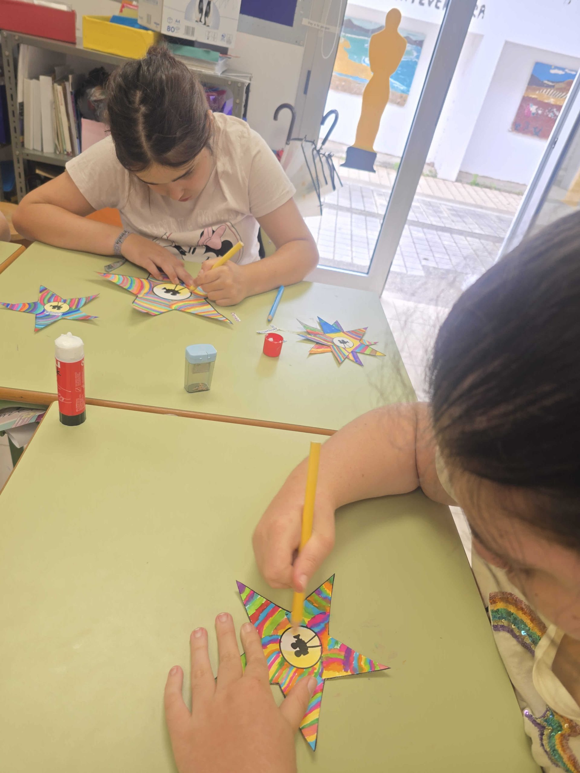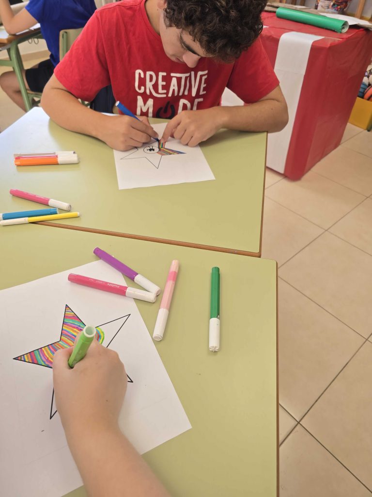 Los compis estuvieron pintando las estrellas de la Gala de los Oscar, para colocarlas en el mural de la fama de nuestra fiesta de bienvenida.