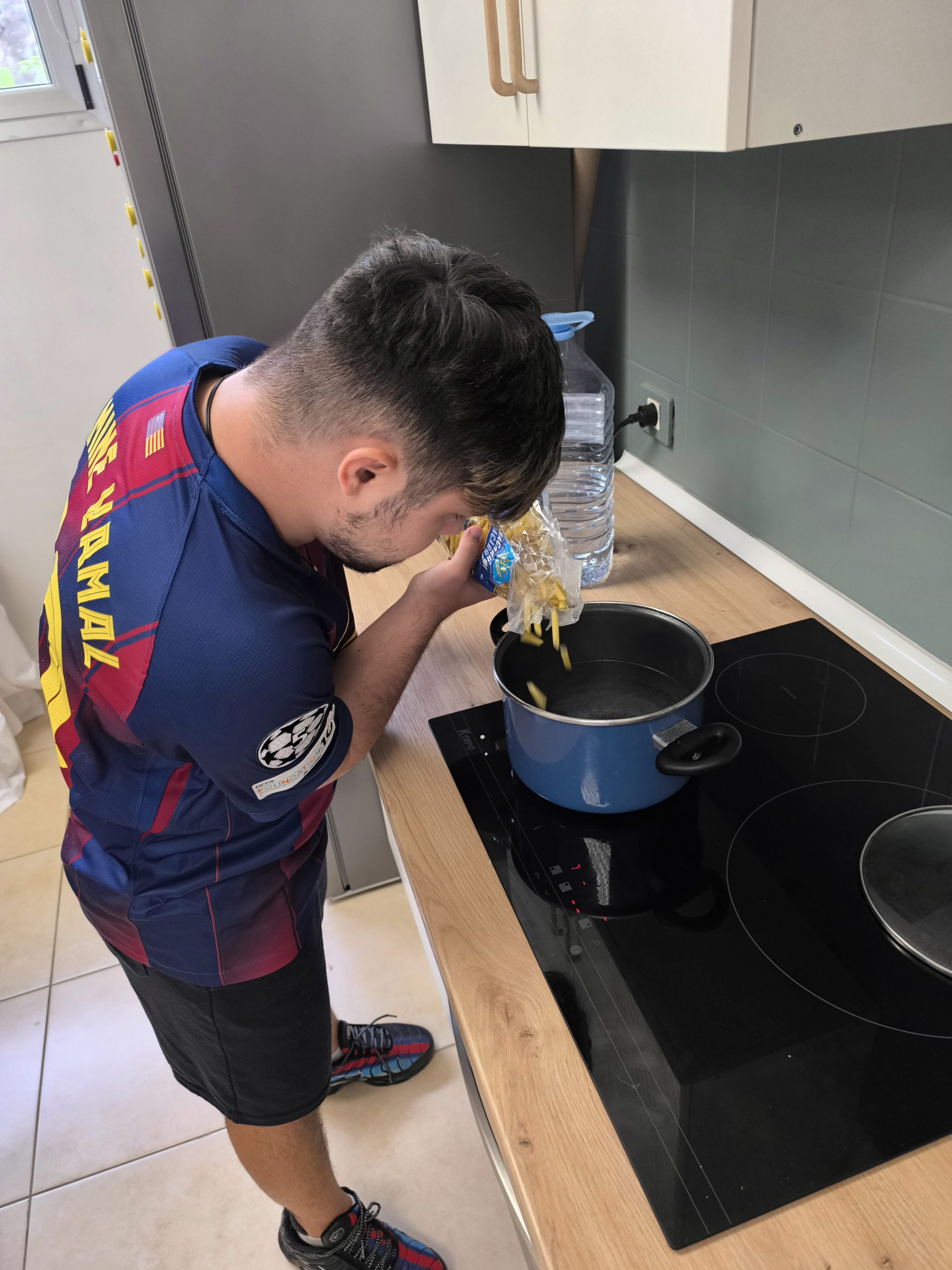 2. Añadir la pasta cuando esté hirviendo con sal y aceite.