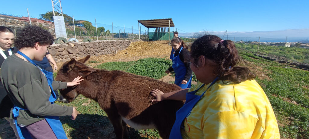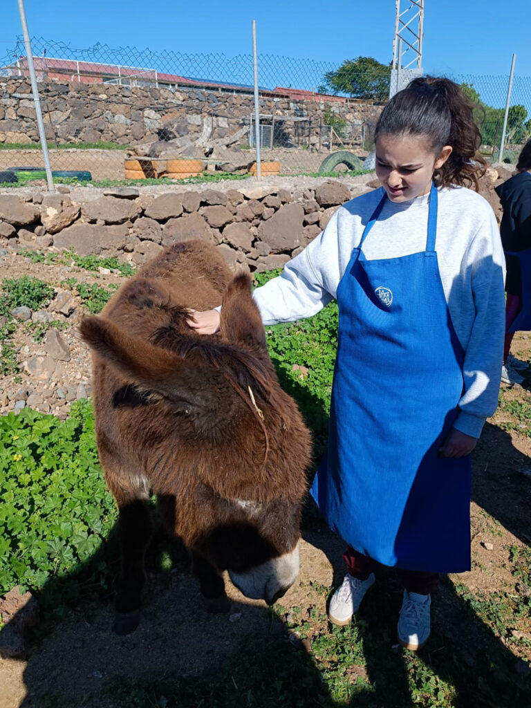 Además, estuvieron en contacto con cabras, tortugas, burros, ovejas, gallos y conejos. A lo largo de la jornada, practicamos vocabulario y realizamos actividades relacionadas con el cuidado de los animales, como darles de comer y aprender a respetarlos y protegerlos.