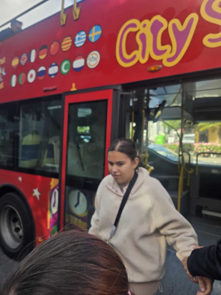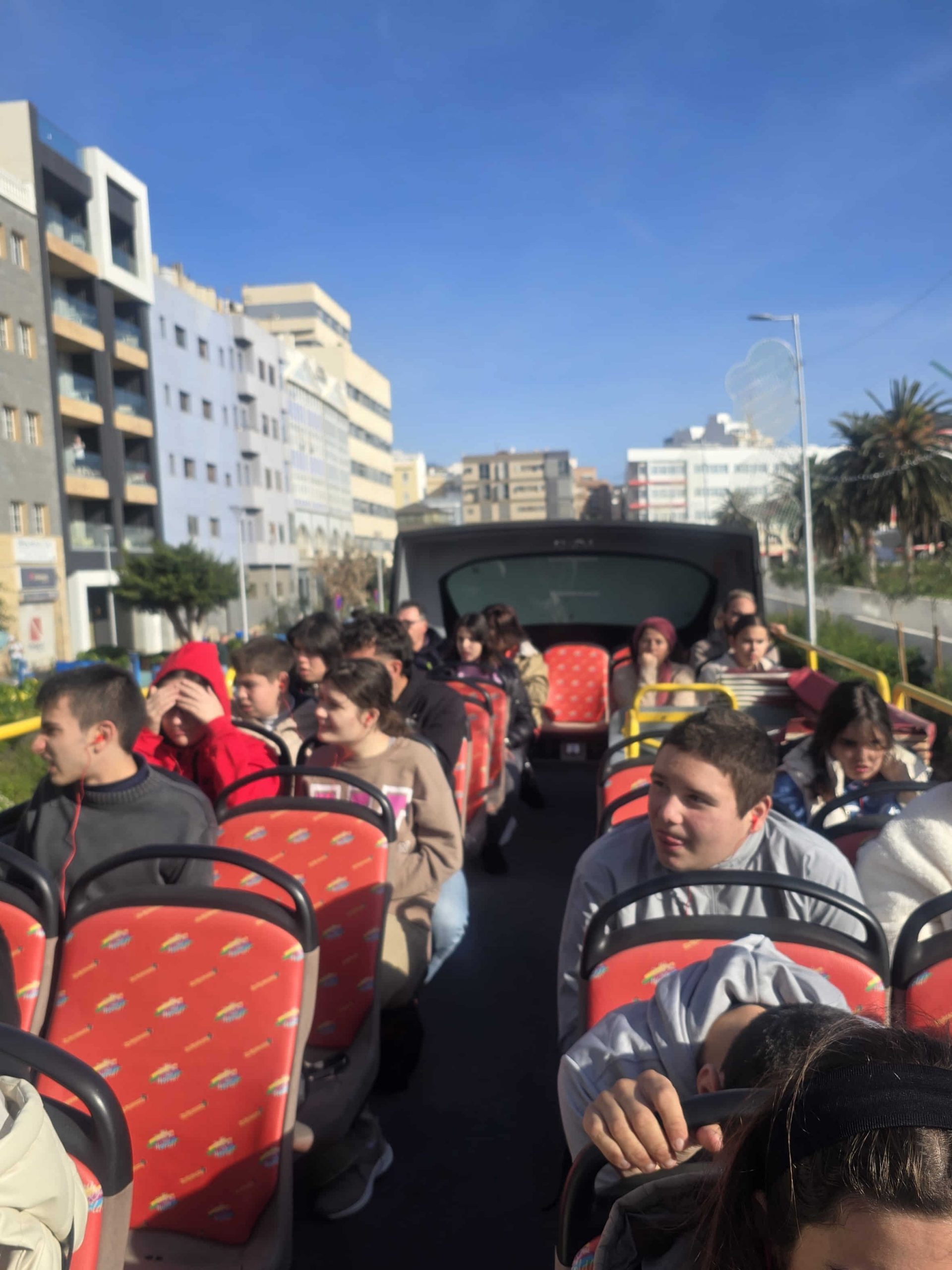 Los chicos y los chicas fueron de paseo en la guagua turistica