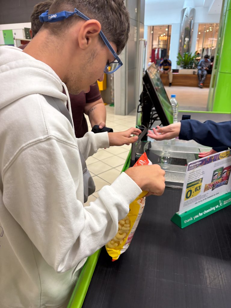Además, aprovechamos la salida para visitar el centro comercial El Muelle, donde pudimos ver disfraces e inspirarnos para las próximas fiestas. Algunos compañeros acudieron al supermercado HiperDino para comprar snacks y compartirlos con los demás, fomentando así el uso responsable del dinero y el desarrollo de habilidades sociales.